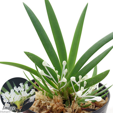 | 種類詳細 | ポダンギス ダクティロセラスはアフリカ原産の小型着生ランです。初夏に白く透き通った小型の花を咲かせる非常に美しい洋ランです。 低温には弱い面がある為、冬季は暖房の風の当たらない暖かい場所で管理する必要があります。高湿度の環境を好む為、テラリウムやビバリウムなどのレイアウトにお勧めです。 |