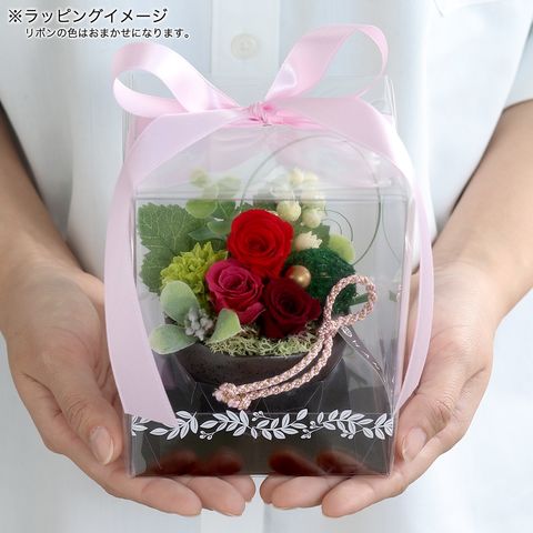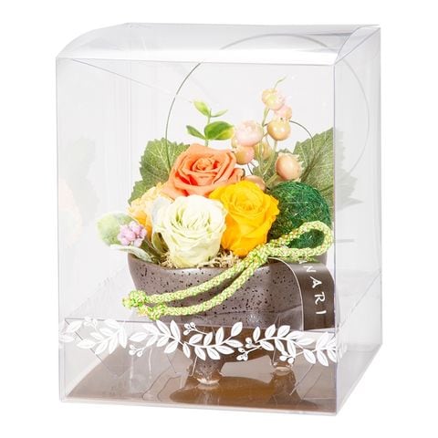 | 特徴 | ●華やかなバラを主役に、アクセントで苔毬を合わせました。 ●透明なケースに入っているので、そのまま飾ることもできます。 |