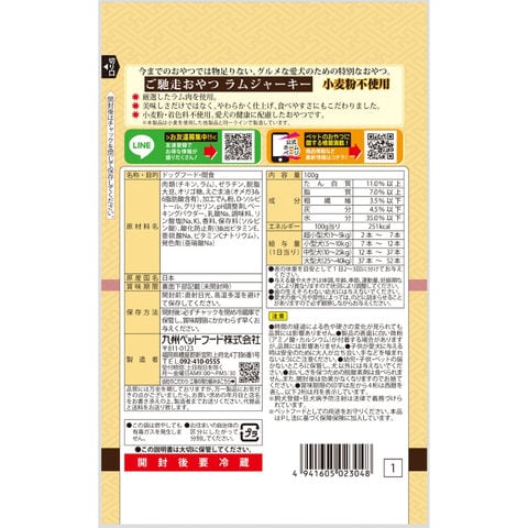 メーカー画像 ご馳走おやつ ラムジャーキー 100g 4941605023048 犬 いぬ イヌ 犬用 いぬ用 dog DOG ドッグフード 犬フード 犬おやつ おやつ 間食 スナック ご褒美 ごほうび 日本産 九州ペットフード 羊 ラム ラム肉 ジャーキー コラーゲン オメガ3脂肪酸 オメガ6脂肪酸 犬餌 犬の餌 犬えさ Q-Pet トリーツ 柔らかい やわらかい やわらかく 柔らかく 食べやすい グルメな愛犬 小麦粉不使用 健康に配慮 国産 日本産 20251219 y25m12 ngtk