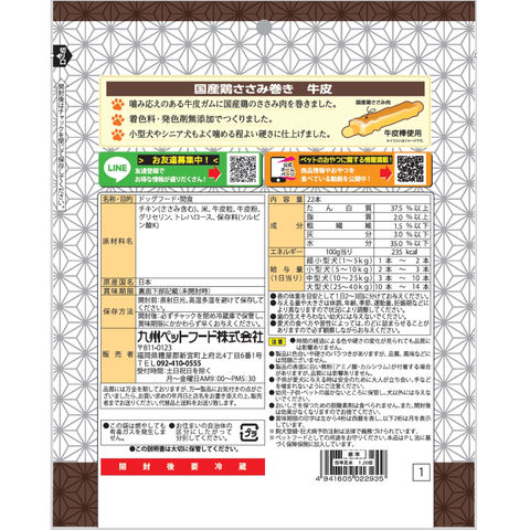 メーカー画像 Q-Pet 国産鶏 ささみ巻き 牛皮 22本 4941605022935 犬 いぬ 犬用 いぬ用 dog ドッグフード 犬フード 犬おやつ おやつ 間食 スナック ご褒美 ごほうび 日本産 九州ペットフード 鶏 チキン 鶏肉 鶏ささみ ささみ 小型犬 シニア犬 高齢犬 老犬 噛みやすい スティック 国産 20260210 y26m02 ngtk