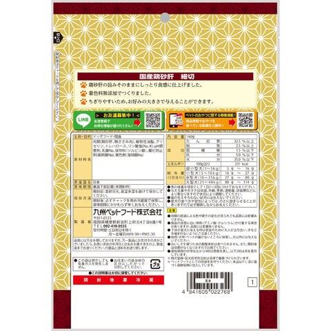 メーカー画像 Q-Pet 国産鶏 砂肝細切 140g 4941605022768 犬 いぬ 犬用 いぬ用 dog ドッグフード 犬フード 犬おやつ おやつ 間食 スナック ご褒美 ごほうび 日本産 九州ペットフード 鶏 チキン 鶏肉 鶏ささみ ささみ 鶏砂肝 鶏すなぎも 砂肝 すなぎも しっとり やわらか ちぎりやすい 与えやすい 小型犬 シニア犬 高齢犬 老犬 食べやすい 国産 20260210 y26m02 ngtk