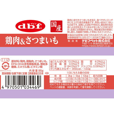 デビフ 鶏肉&さつまいも 85g 缶詰 犬 ウェットフード ドッグフード 4970501034469 いぬ イヌ ドッグ DOG 愛犬 ウェット ウエットフード ウエット フード 犬フード イヌフード いぬフード 鶏肉 鶏 肉 チキン 鶏ささみ 鶏ササミ とりささみ ササミ 缶 国産 日本産 日本 着色料不使用 発色剤不使用 食物繊維 ベジタブル 野菜 さつまいも さつま芋 サツマイモ 皮付き ミンチ状 総合栄養食 栄養食 デビフ 鶏肉&さつまいも 85g 缶詰 犬 ウェットフード ドッグフード 20251117 y25m11 kak まとめ まとめ買い 複数 複数売り