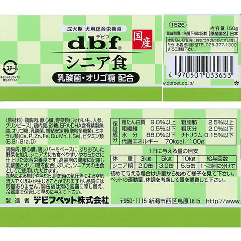 | デビフ シニア食 乳酸菌・オリゴ糖配合 150g×6 | |