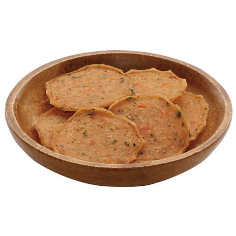 | 特長 | ●食品添加物は一切使用せず、良質たん白質豊富な鶏ササミと栄養豊富な緑黄色野菜のみを使用したおやつです。 ●パリッと食感でそのままでも、好みのサイズに割っても食べやすい極薄仕上げのササミチップスです。 ●穀物不使用なので、穀物アレルギーのワンちゃんにも安心です。 |