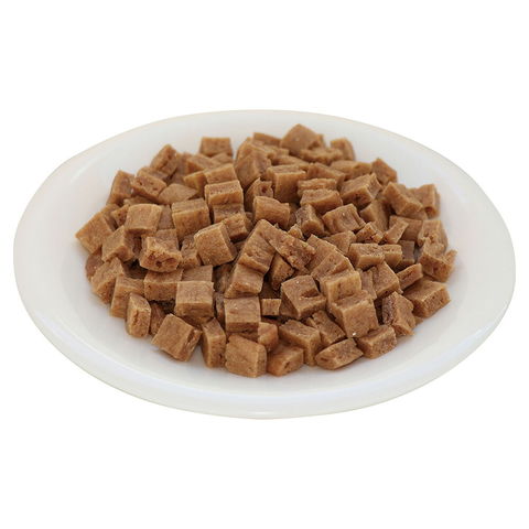 | 特長 | ●濃厚な鶏の旨味丸ごとたっぷりの犬用おやつです。 ●鶏肉をふっくら蒸して美味しさを閉じ込めました。 ●しつけのご褒美にもピッタリな角切りタイプ、一口サイズで食べやすいです。 ●旨味たっぷりな地鶏エキスを配合しています。 ●発色剤、香料不使用です。 ●栄養豊富な人参、ほうれん草入りです。 |