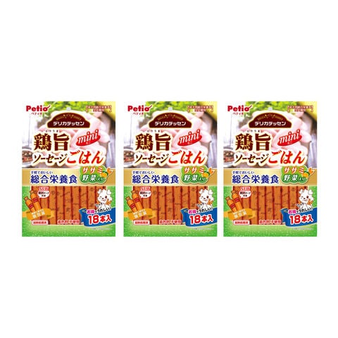 ペティオ デリカテッセン 総合栄養食 鶏旨 ミニソーセージごはん ササミ野菜入り 18本入×3 関東当日便