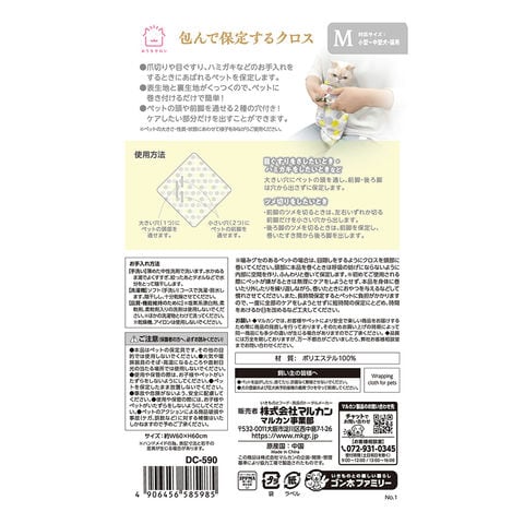 メーカー画像 マルカン おうちサロン 包んで保定するクロス M 4906456585985 20260129 y26m02 cngc 犬用 犬用品 犬 いぬ dog 猫用 猫用品 猫 ねこ cat 小型犬 中型犬 保定 クロス 包む 巻く 巻き付ける 布 爪切り つめ切り 目薬 目ぐすり 歯磨き 歯みがき 暴れる あばれる 簡単 ケア