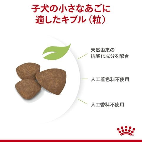●生後10ヶ月までの短い成長期に必要な高いエネルギー要求量を満たす特別な栄養設計で、小型犬の子犬の成長をサポートします。