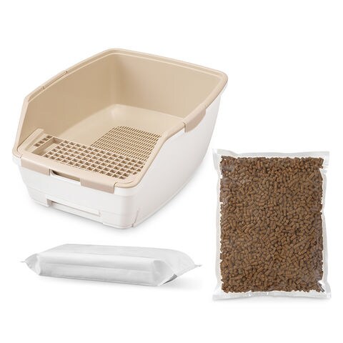 | 特長 | ●「ラクリーン 消臭システムトイレ オープンタイプ」+「消臭サンド」+「消臭シート」の組み合わせで、気になるニオイを抑える猫用システムトイレのスターターセットです。 【トイレ】 ●砂落とし付きで飛び散りにくく、お手入れが簡単です。 ●ゆったり広々開放的なので大きめのネコちゃんやニオイがこもるトイレが苦手なネコちゃんにおすすめです。 ●毎日オシッコを取り除く必要がなく、お掃除や丸洗いがしやすいので飼い主さんにも優しいトイレです。 【消臭サンド】 ●天然針葉樹+独自の消臭成分で気になるニオイを消臭します。 ●ぬれても長時間、形状をキープするからお手入れも簡単です。 ●オシッコ汚れを残さず通過しニオいにくくなっています。 ●約1か月交換不要*です。*標準的な成猫1匹で使用した場合の目安です。 【消臭シート】 ●クエン酸+独自の消臭成分で気になるオシッコ臭を強力消臭*します!*アイリスオーヤマ比 ●オシッコの色が確認しやすい白色シートです。 ●消臭シートは約1週間交換不要*です。*愛猫1匹で使用した場合の目安です。 |