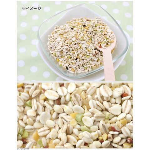 | 特長 | ●国産のおいしい穀物を贅沢にも15種ミックスしました。 ●全て皮むきなので与えやすく、食べかすが散らかりにくくなっています。 ●着色料や保存料は使用しておりません。素材そのままなので安心です。 |