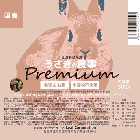 | 国産 全成長段階用 うさぎの食事プレミアム 少量パック 300g | |