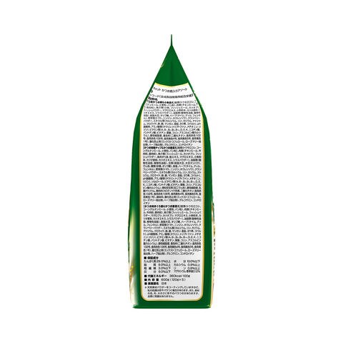 | 原材料 | 【まぐろ味かつお節&小魚添え】 穀類(トウモロコシ、コーングルテンミール、小麦粉、パン粉)、肉類(チキンミール、牛肉粉、豚肉粉)、魚介類(小魚、フィッシュミール、カツオブシ、フィッシュパウダー、マグロエキス、小魚粉末、カツオ節粉、カツオエキス、シラスパウダー)、油脂類(動物性油脂、植物性油脂)、脱脂大豆、オリゴ糖、ハーブ(タイム、ディル、フェンネル)、野菜類(トマト、ニンジン、ホウレンソウ)、クランベリーパウダー、ミネラル類(カルシウム、リン、カリウム、ナトリウム、クロライド、鉄、銅、マンガン、亜鉛、ヨウ素、コバルト)、pH調整剤、アミノ酸類(タウリン、トリプトファン、メチオニン、リジン)、ビタミン類(A、B1、B2、B6、B12、D、E、K、ニコチン酸、パントテン酸、ビオチン、葉酸、コリン、アスコルビン酸カルシウム)、酵母細胞壁、着色料(二酸化チタン、食用赤色102号、食用赤色106号、食用黄色4号、食用黄色5号、食用青色1号)、酸化防止剤(ミックストコフェロール、ローズマリー抽出物、ハーブ抽出物)、グルコサミン、コンドロイチン 【かつお味鮭チップ&かつお節添え】 穀類(トウモロコシ、コーングルテンミール、小麦粉、パン粉)、肉類(チキンミール、牛肉粉、豚肉粉)、魚介類(フィッシュミール、カツオブシ、フィッシュパウダー、魚肉すり身、鮭エキス、マグロエキス、小魚粉末、カツオ節粉、カツオエキス、シラスパウダー)、油脂類(動物性油脂、植物性油脂)、豆類(脱脂大豆、大豆タンパク)、でん粉、糖類(砂糖、オリゴ糖)、食塩、ハーブ(タイム、ディル、フェンネル)、野菜類(トマト、ニンジン、ホウレンソウ)、クランベリーパウダー、ミネラル類(カルシウム、リン、カリウム、ナトリウム、クロライド、鉄、銅、マンガン、亜鉛、ヨウ素、コバルト)、pH調整剤、アミノ酸類(タウリン、トリプトファン、メチオニン、リジン)、ソルビトール、ビタミン類(A、B1、B2、B6、B12、D、E、K、ニコチン酸、パントテン酸、ビオチン、葉酸、コリン、アスコルビン酸カルシウム)、増粘安定剤(加工でん粉)、酵母細胞壁、乳酸ナトリウム、着色料(カロテノイド色素、二酸化チタン、食用赤色102号、食用赤色106号、食用黄色4号、食用黄色5号、食用青色1号)、調味料、酸化防止剤(ミックストコフェロール、ローズマリー抽出物、ハーブ抽出物)、グルコサミン、コンドロイチン 【かつお味まぐろ節&かつお節添え】 穀類(トウモロコシ、コーングルテンミール、小麦粉、パン粉)、肉類(チキンミール、牛肉粉、豚肉粉)、魚介類(フィッシュミール、フィッシュパウダー、マグロブシ、カツオブシ、マグロエキス、小魚粉末、カツオ節粉、カツオエキス、シラスパウダー)、油脂類(動物性油脂、植物性油脂)、脱脂大豆、オリゴ糖、ハーブ(タイム、ディル、フェンネル)、野菜類(トマト、ニンジン、ホウレンソウ)、クランベリーパウダー、ミネラル類(カルシウム、リン、カリウム、ナトリウム、クロライド、鉄、銅、マンガン、亜鉛、ヨウ素、コバルト)、pH調整剤、アミノ酸類(タウリン、トリプトファン、メチオニン、リジン)、ビタミン類(A、B1、B2、B6、B12、D、E、K、ニコチン酸、パントテン酸、ビオチン、葉酸、コリン、アスコルビン酸カルシウム)、酵母細胞壁、着色料(二酸化チタン、食用赤色102号、食用赤色106号、食用黄色4号、食用黄色5号、食用青色1号)、酸化防止剤(ミックストコフェロール、ローズマリー抽出物、ハーブ抽出物)、グルコサミン、コンドロイチン |