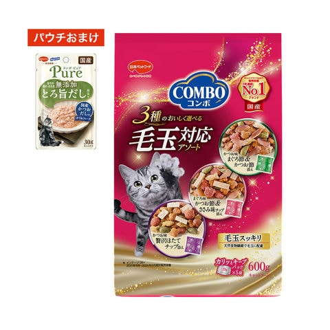 _neko 日本ペット コンボ キャット毛玉対応アソート 600g 4902112044827 猫 猫フード キャットフード おやつ オールステージ 成猫 幼猫 毛玉 下部尿路 オリゴ糖 カリカリ_bag おまけ お試し コンボ ピュア キャット パウチ かつお 国産かつおだし入り 30g ウエットフード ウエット レトルト とろ旨だし とろみ 着色料無添加 香料無添加 保存料無添加 無添加 国産 4902112068830 bnr2602comwet ari catday2026nhpt catday2026 y26m01 20260128