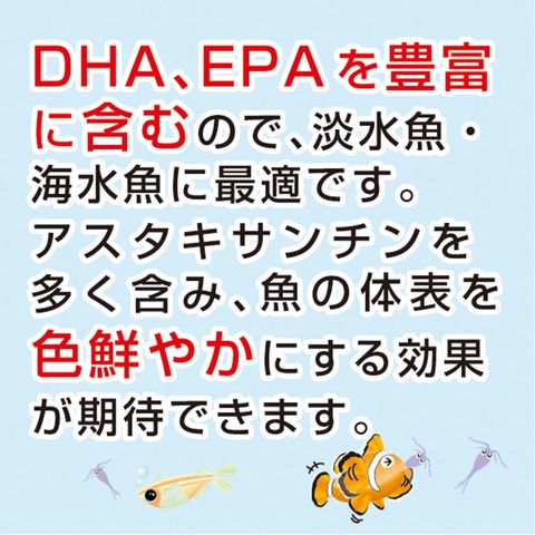 | 原材料 | コペポーダ、水、DHA、EPA、ビタミンB12、ビタミンB6、安定型ビタミンC、ビタミンB2、ビタミンB1、ビオチン、塩化コリン、葉酸、パントテン酸、イノシトール、ナイアシン |