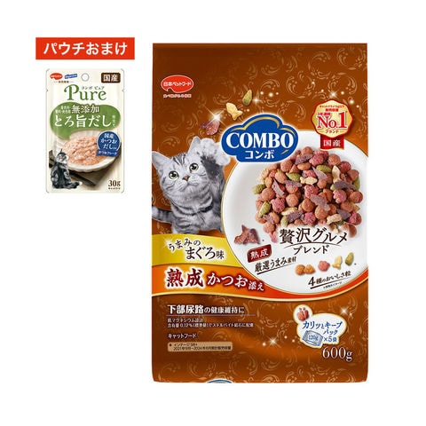 メーカー画像 キャットフード コンボ キャット まぐろ味・熟成かつお添え 600g 4902112046814 猫用 猫用品 猫 ねこ 猫フード フード ドライ えさ 餌 ごはん まぐろ かつお 鮪 鰹 お魚 フィッシュ 下部尿路 国産 COMBO 日本ペットフード npf ngwordCHK_OK おまけ お試し コンボ ピュア キャット パウチ かつお 国産かつおだし入り 30g ウエットフード ウエット レトルト とろ旨だし とろみ 着色料無添加 香料無添加 保存料無添加 無添加 国産 4902112068830 bnr2602comwet ari catday2026nhpt catday2026 y26m01 20260128 catday2026raku