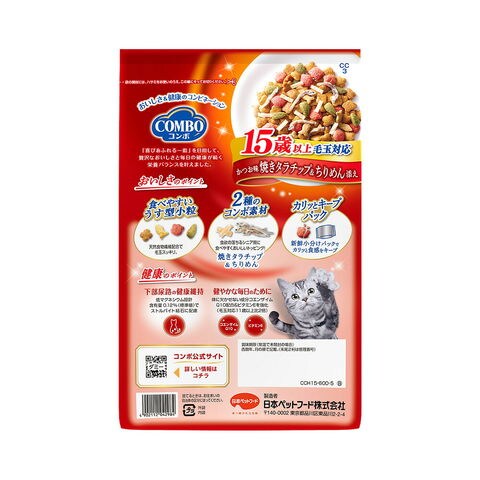 おまけパウチ付 コンボ キャット 毛玉対応 15歳以上 かつお味・焼きタラ・ちりめん添え 600g(120g×5袋) 超高齢猫用 国産
