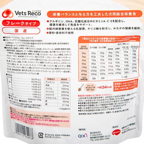 Vets Reco フィーディングサポート 犬用 (フレークタイプ) 200g 4902112032978 20260122 y26m01 cngc 犬 いぬ イヌ ドッグ dog 犬総合栄養食 総合栄養食 犬用 犬フード 栄養補助 補助食品 補助 ベッツリコ 日本産 日本 国産 動物病院専用食 動物病院 犬病院 安心 安全 獣医師 健康維持 サポート フレークフード フレーク アルギニン DHA 免疫力 ω3脂肪酸 香料不使用 着色料不使用 流動食 介護食 投薬補助 回復期 終末期 介護期 療養時 栄養補給 病気 手術後 食欲不振 栄養バランス 栄養 腸内細菌 乳酸菌 オリゴ糖 高齢犬 高齢 老犬 シニア犬