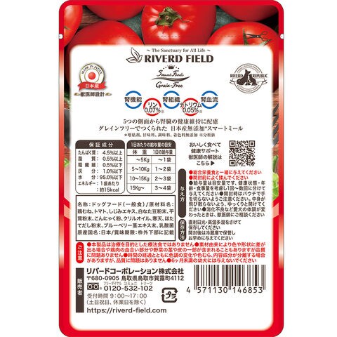 メーカー画像 いぬみ~る 無添加スマートフーズ 腎臓健康維持 トマト 鶏むね入り 40g 4571130146853 犬フード 犬 イヌ dog ドッグフード 犬用 いぬ用 犬の餌 犬えさ 犬餌 ペットフード ウェットフード ウエットフード レトルト パウチ 一般食 グレインフリー クリルオイル 生後6カ月以上 鶏胸肉 鶏肉 チキン 腎機能 腎組織 腎血流 低リン 低ナトリウム 腎臓 健康維持 無添加 スマートミール 厳選素材 国産 日本産 20260128 y26m01 ngtk いぬみーる