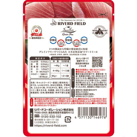 | 特長 | ●グレインフリーでつくられた 日本産無添加スマートミールです。 ●低リン・低ナトリウム設計で愛猫の腎臓をやさしくサポートしながら、毎日の食事としておいしく続けられることを重視しました。 ●グレインフリー、増粘剤、甘味料、調味料、着色料無添加です。 |