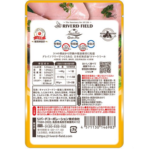 catday2026rvrd catday2026 メーカー画像 ねこみ~る 無添加スマートフーズ 腎臓健康維持 鶏むね 40g 4571130146983 猫 ネコ 猫用 ねこ用 愛猫 cat 猫フード キャットフード ペットフード ごはん ご飯 トッピング 猫餌 ウェットフード ウエットフード レトルト パウチ 一般食 生後6カ月以上 鶏胸肉 鶏肉 チキン 腎機能 腎組織 腎血流 低リン 低ナトリウム 腎臓 健康維持 無添加 スマートミール スマートフーズ 厳選素材 国産 日本産 20260128 y26m01 ngtk ねこみーる catday2026raku