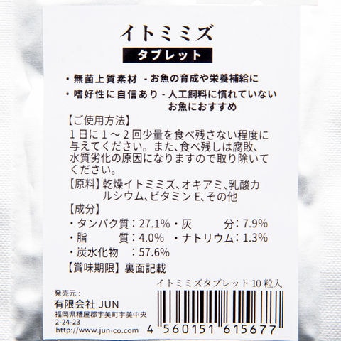 JUN イトミミズ Itomimizu タブレット 10粒入り 直径約8mm 関東当日便