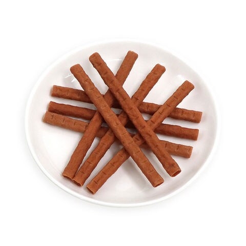 | 原材料 | 鶏肉、コラーゲン、加工澱粉、脱脂大豆粉末、小麦グルテン、マグロ、にんじん、ソルビトール、プロピレングリコール、食塩、pH調整剤、酸化防止剤(エリソルビン酸)、保存料(ソルビン酸K、デヒドロ酢酸Na)、ビタミンE、発色剤(亜硝酸Na)、着色料(黄色4号、二酸化チタン) |
