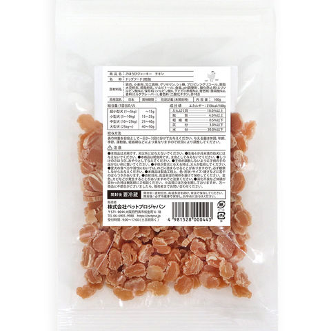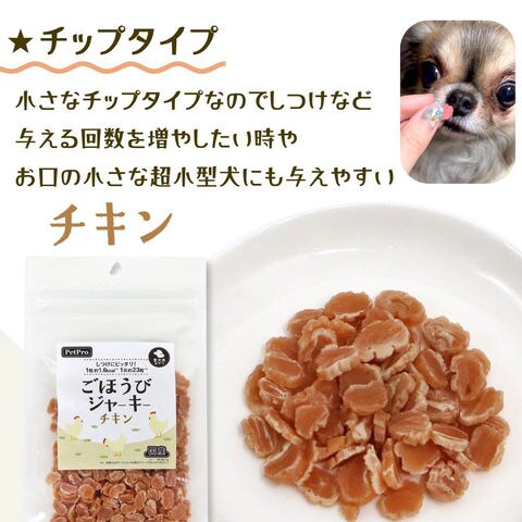 メーカー画像 ペットプロ ごほうびジャーキー チキン 100g 4981528000443 犬 イヌ 犬用 いぬ用 dog 犬フード ドッグフード 犬おやつ おやつ トリーツ 間食 犬の餌 犬えさ 犬餌 ペットフード ジャーキー 小さい チップタイプ 与えやすい 口が小さい 小さい口 小さな口 超小型犬 小型犬 高齢犬 シニア犬 老犬 生後6か月から 鶏肉 しつけ ごほうび ご褒美 国産 日本産 20260204 y26m02 ngtk