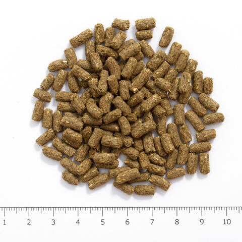 | 原材料 | アルファルファミール、チモシーミール、米糠、小麦ふすま、コーングルテンミール、乾燥おから、脱脂大豆、小麦粉、ビール酵母、ゼオライト、ブドウ糖、国産キャベツエキスパウダー、植物発酵抽出物、にんじん粉末、パパイヤ抽出物、ミネラル類(炭酸カルシウム、食塩、硫酸亜鉛、硫酸銅、硫酸コバルト、よう素酸カルシウム)、ビタミン類(コリン、ナイアシン、E、パントテン酸、B6、A、B2、葉酸、ビオチン、D3)、アミノ酸類(DL-メチオニン) |
