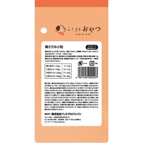 | ペットプロ こくさんおやつ 鶏ささみ小粒 15g | |