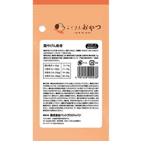 メーカー画像 ペットプロ こくさんおやつ 鶏やげん軟骨 15g 4981528000238 犬 イヌ いぬ 犬用 いぬ用 dog DOG 犬フード ドッグフード どっぐふーど 犬おやつ おやつ トリーツ 間食 犬用 犬の餌 犬えさ 犬餌 ペットフード ジャーキー 鶏ヤゲン軟骨 やげん ヤゲン 軟骨 鶏軟骨 鶏 チキン 生後6か月以上 超小型犬 小型犬 食べやすい大きさ ポケットサイズ お散歩 お出かけ フック穴 持ち運びに便利 無添加 国産 日本産 20260130 y26m02 ngtk