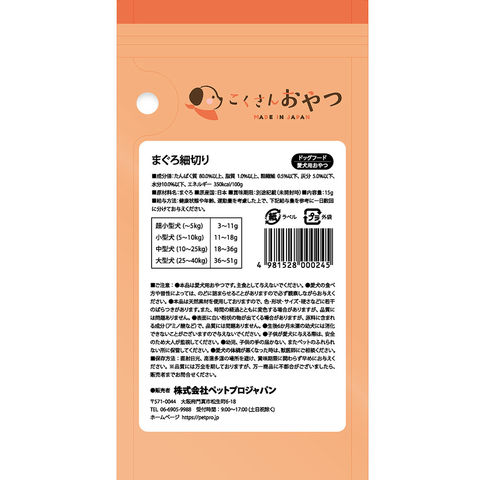 メーカー画像 ペットプロ こくさんおやつ まぐろ細切り 15g 4981528000245 犬 イヌ いぬ 犬用 いぬ用 dog DOG 犬フード ドッグフード どっぐふーど 犬おやつ おやつ トリーツ 間食 犬用 犬の餌 犬えさ 犬餌 ペットフード ジャーキー マグロ 鮪 スティック 生後6か月以上 超小型犬 小型犬 食べやすい大きさ ポケットサイズ お散歩 お出かけ フック穴 持ち運びに便利 無添加 国産 日本産 20260130 y26m02 ngtk