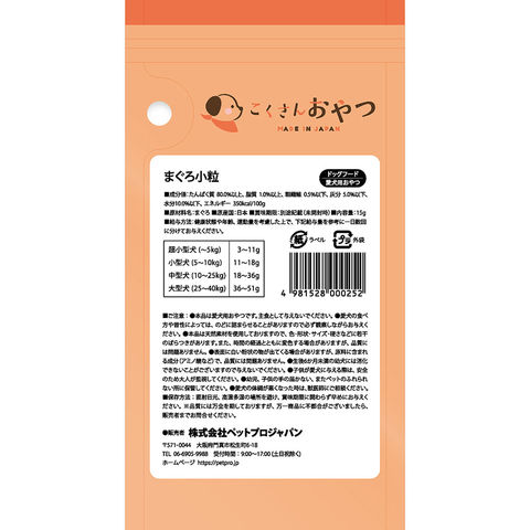 メーカー画像 ペットプロ こくさんおやつ まぐろ小粒 15g 4981528000252 犬 イヌ いぬ 犬用 いぬ用 dog DOG 犬フード ドッグフード どっぐふーど 犬おやつ おやつ トリーツ 間食 犬用 犬の餌 犬えさ 犬餌 ペットフード ジャーキー マグロ 鮪 生後6か月以上 超小型犬 小型犬 小さい 粒 ひとくちサイズ 一口サイズ 食べやすい大きさ ポケットサイズ お散歩 お出かけ フック穴 持ち運びに便利 無添加 国産 日本産 20260130 y26m02 ngtk