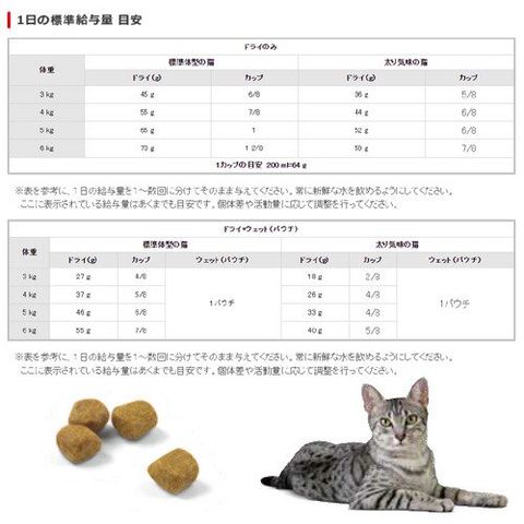 | ご注意 | ※本品は7歳以上の中高齢猫用です。対象年齢以外の猫には与えないでください。 |