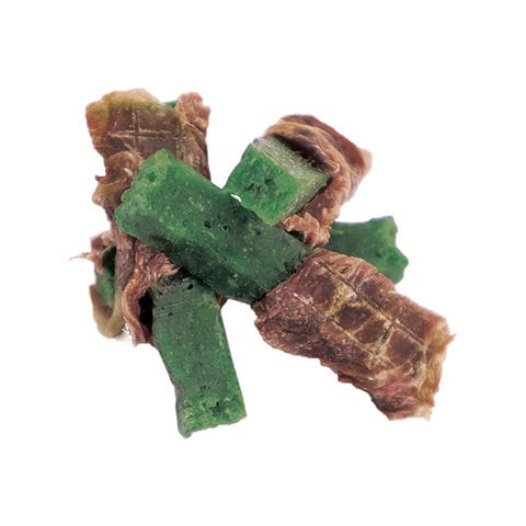 | 特長 | ●丁寧に下処理をした国産の生ピーマンを贅沢に使用した栄養満点な野菜ガムに、鶏もも肉を巻くことでうまみをプラスしたおやつです。 ●ほど良い弾力にしあげることで、子犬でもしっかり噛んで味わえます。 ●ピーマンに含まれるクロロフィルやピラジンは、運動不足になりがちな室内犬の健康維持におすすめです。 ●あじわい深いもも肉を巻いた野菜ガムを食べることで、歯と歯茎と体の健康を維持します。 |