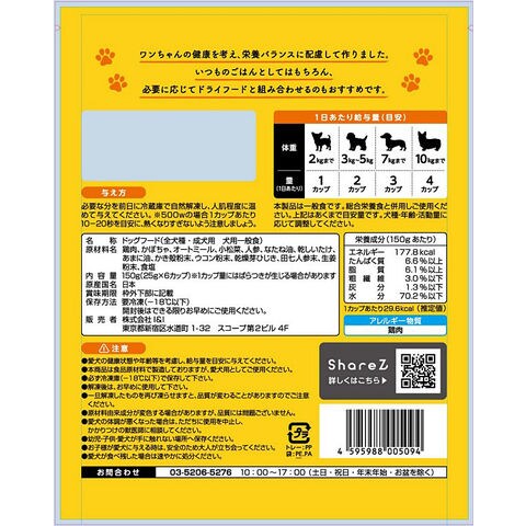 冷凍 I&I Sharez まごころごはん鶏 25g×6カップ入り 冷凍商品 冷凍食品 解凍 いぬ 犬 ドッグ ドック ドッグフード ドックフード ごはん ご飯 えさ 餌 おやつ ご褒美 ごほうび 副食 4595988005094 成犬 アダルト 高齢 高齢犬 シニア シニア犬 仔犬 子犬 パピー 全犬種 オールステージ 一般食 20260217 y26m02 kak チキン 鶏肉 鶏 かぼちゃ オートミール ふりかけ トッピング 自然解凍 1食 一食 一食分 小分け 小分けカップ 個包装 備蓄 備蓄食 グルテンフリー 小麦不使用