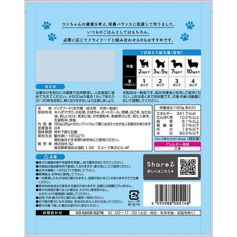 冷凍 I&I Sharez まごころごはんまぐろ 25g×6カップ入り 冷凍商品 冷凍食品 解凍 いぬ 犬 ドッグ ドック ドッグフード ドックフード ごはん ご飯 えさ 餌 おやつ ご褒美 ごほうび 副食 4595988005148 成犬 アダルト 高齢 高齢犬 シニア シニア犬 仔犬 子犬 パピー 全犬種 オールステージ 一般食 20260217 y26m02 kak まぐろ マグロ 鮪 魚 魚肉 フィッシュ 小松菜 かぼちゃ オートミール ふりかけ トッピング 自然解凍 1食 一食 一食分 小分け 小分けカップ 個包装 備蓄 備蓄食 グルテンフリー 小麦不使用