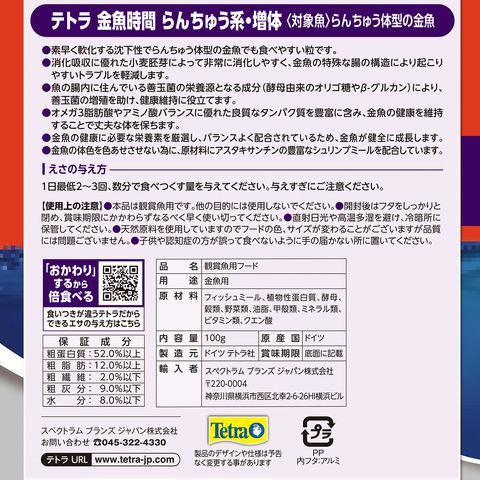 テトラ 金魚時間 らんちゅう系 増体 小スティック 100g 関東当日便