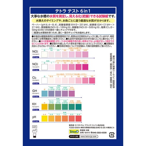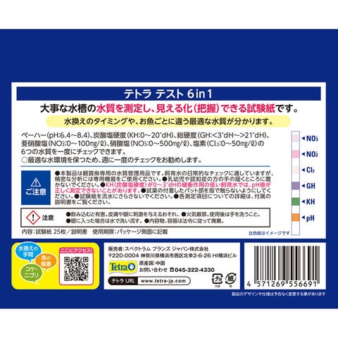 テトラ テスト試験紙 6in1 (淡水用) 25回 4571269556691 水質試験 試験キット 水質試験キット 試験セット 水質試験紙 ペーハー ph 炭酸塩硬度 硬度 KH 総硬度 GH 亜硝酸塩 NO2- 硝酸塩 NO3- 塩素 Cl2 カルキ 水質チェック お手入れ 手入れ メンテナンス メンテナンス用品 水質管理 水質管理用品 日常チェック チェッカー 日常チェッカー お手軽 手軽 自由研究 夏休み 夏休み宿題 アクア アクア用品 アクアリウム アクアリウム用品 20260207 y26m02 kak