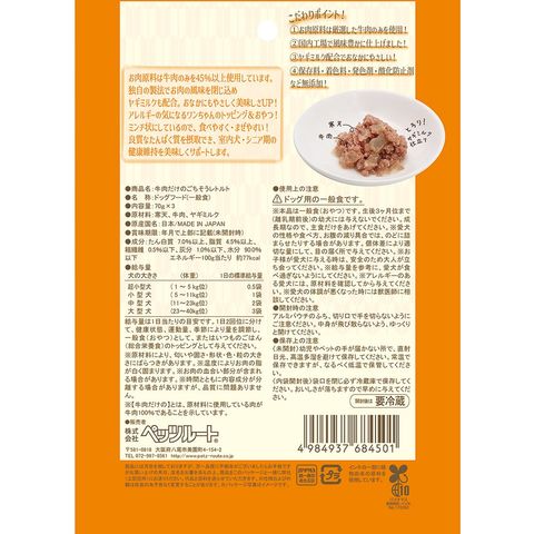 メーカー画像 ペッツルート 牛肉だけのごちそうレトルト 70g×3袋 ドッグフード 4984937684501 犬フード 犬 いぬ おやつ 犬おやつ 無添加 国産 レトルト パウチ ウエット ウェット 柔らかい やわらかい ごちそう 牛 うし 牛肉 グルテンフリー トッピング ヤギミルク 寒天 食物繊維 ミンチ 室内犬 シニア シニア期 たんぱく質 老犬 684501 kak y26m01 20260111