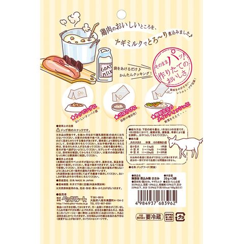 メーカー画像 ペッツルート 無添加 ヤギミルクでやわらか煮込み鶏 ささみ 60g (20g×3袋) 4984937683962 犬 いぬ 犬用 いぬ用 dog ドッグフード 犬フード 犬おやつ おやつ 間食 スナック 国産 トリーツ ご褒美 ごほうび 鶏 鶏ささみ ヤギミルク 鶏肉 チキン トッピング レトルト プチ包装 小分け 分包 小型犬 シニア犬 高齢犬 老犬 日本産 かんたん 簡単 ダイエット kak y26m01 20260111
