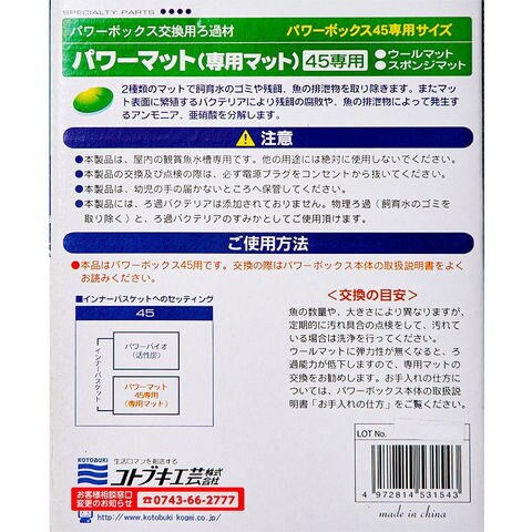 アクアリウム用品 金魚・メダカ メダカ アクア用品 ろ材 ウールマット 純正交換ろ材 純正 交換 コトブキ パワーマット 45用 器具 コトブキ工芸 _aqua_maker_kw 4972814531543 外部フィルター 水槽用外部フィルター 単品 外部式フィルター 水槽 熱帯魚 観賞魚 金魚 水草 海水魚 45 寿 KOTOBUKI 20260111 kak y26m01