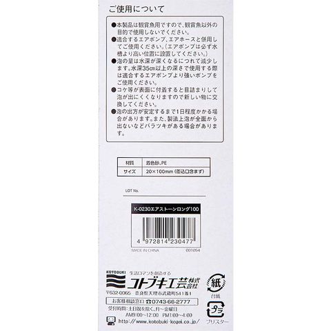 エアーストーン _aqua コトブキ工芸 K-0230 エアストーンロング100 4972814230477 アクアリウム アクアリウム用品 エアレーション・キスゴム エアストーン エアストン エアーストン 吸盤 無印キスゴム 寿 KOTOBUKI 20260111 kak y26m01