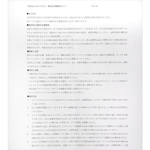●飼育水等のカルシウム(Ca)濃度が測定できる検査キットです。 ●約50~100回分です。 |