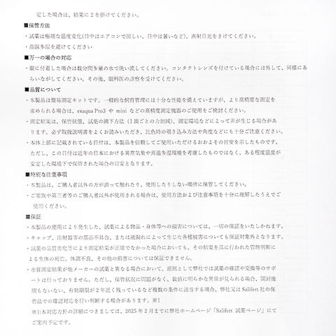 | ご注意 | ※本品はアクアリウム用水質検査キットです。目的以外の用途では使用しないでください。 ※保護手袋・マスク等、必要に応じた保護具を用意し着用してください。 ※検査中の飲食や喫煙は行わないでください。 ※水が着色している場合は、検査前に脱色処理を行ってください。 ※正確な判定のため、明るい場所で結果をご確認ください。 |