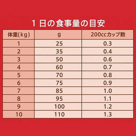 与え方 ●パッケージ記載の給与量を目安に、愛猫の運動量に合わせて与える量を加減してください。