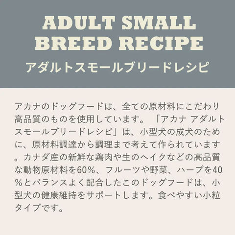 【アカナ アダストスモールブリードレシピ】 3510kcal/kg |