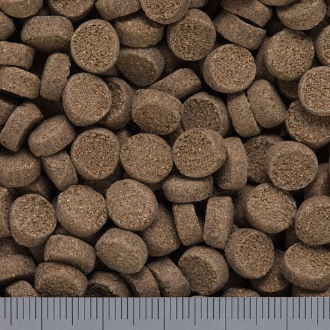 | 使用原料 | カニガラ府mm夏、大豆ミール、フィッシュミール、エンドウ豆繊維、ビール酵母、オキアミミール、食物繊維、魚油、卵黄粉末、イカミール、スピルリナ、アミノ酸(メチオニン)、生菌剤、フミン酸、カロチノイド、ガーリック、ビタミン類(塩化コリン、E、C、イノシトール、B5、B2、A、B1、B6、B3、葉酸、D3、ビオチン)、ミネラル類(Fe、Mg、Zn、Mn、Cu、I) |