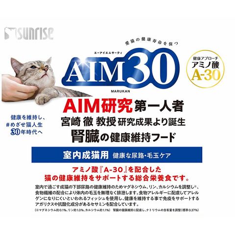AIMfis キャットフード サンライズ AIM30 室内成猫用 健康な尿路・毛玉ケア フィッシュ 1.2kg 食事 ご飯 ごはん 餌 えさ 猫フード 猫 ねこ 成猫 ねこのご飯 健康 健康維持 小分け 国産 国内産 日本産 日本製 ネコ用 猫用 腎臓 室内 魚 魚味 アミノ酸 総合栄養食 尿路 毛玉 乳酸菌 食物繊維 免疫 免疫力 皮膚被毛 セサミン アレルギー 食物アレルギー ドライフード 4973321943676 エイム AIM フード かりかり 室内猫 ngwordCHK_OK ドライ 20260117 y26m01 kak まとめ売り まとめ 複数売り