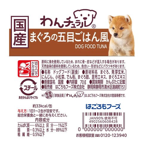 わんチュラル まぐろの五目ごはん風 70g はごろも 家族品質 4902560608428 はごろもフーズ 犬 いぬ 犬用 いぬ用 ドッグ dog 犬フード ドッグフード ペットフード フード 餌 エサ ごはん 一般食 トッピング 国産 オールステージ 全年齢 全成長段階 ウェットフード ウエットフード ウェット ウエット 手作り風 手づくり風 缶詰 缶 増粘剤不使用 調味料不使用 着色料不使用 発色剤不使用 でん粉 でんぷん 備蓄 長期保存 まぐろ 鮪 さかな 魚 フィッシュ かつおとさつまいもおじや風 4902560608435 いぬフード ふりかけ 日本産 日本 かつお 鰹 さつまいも 人参 にんじん 野菜 根菜 ベジタブル エキス 鶏肉とかぼちゃリゾット風 4902560608442 鶏肉 鶏 肉 チキン 南瓜 かぼちゃ アソート ギフト おためし 試し 20260117 y26m01 kak