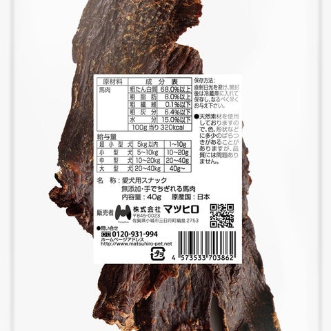 マツヒロ 素材万歳 無添加 手でちぎれる馬肉 40g 関東当日便